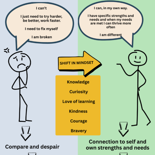 Supporting a neurodivergent child requires you to also prioritise your own well-being. Parenting isn’t about eliminating stress but finding ways to stay grounded amidst it. Ask yourself: